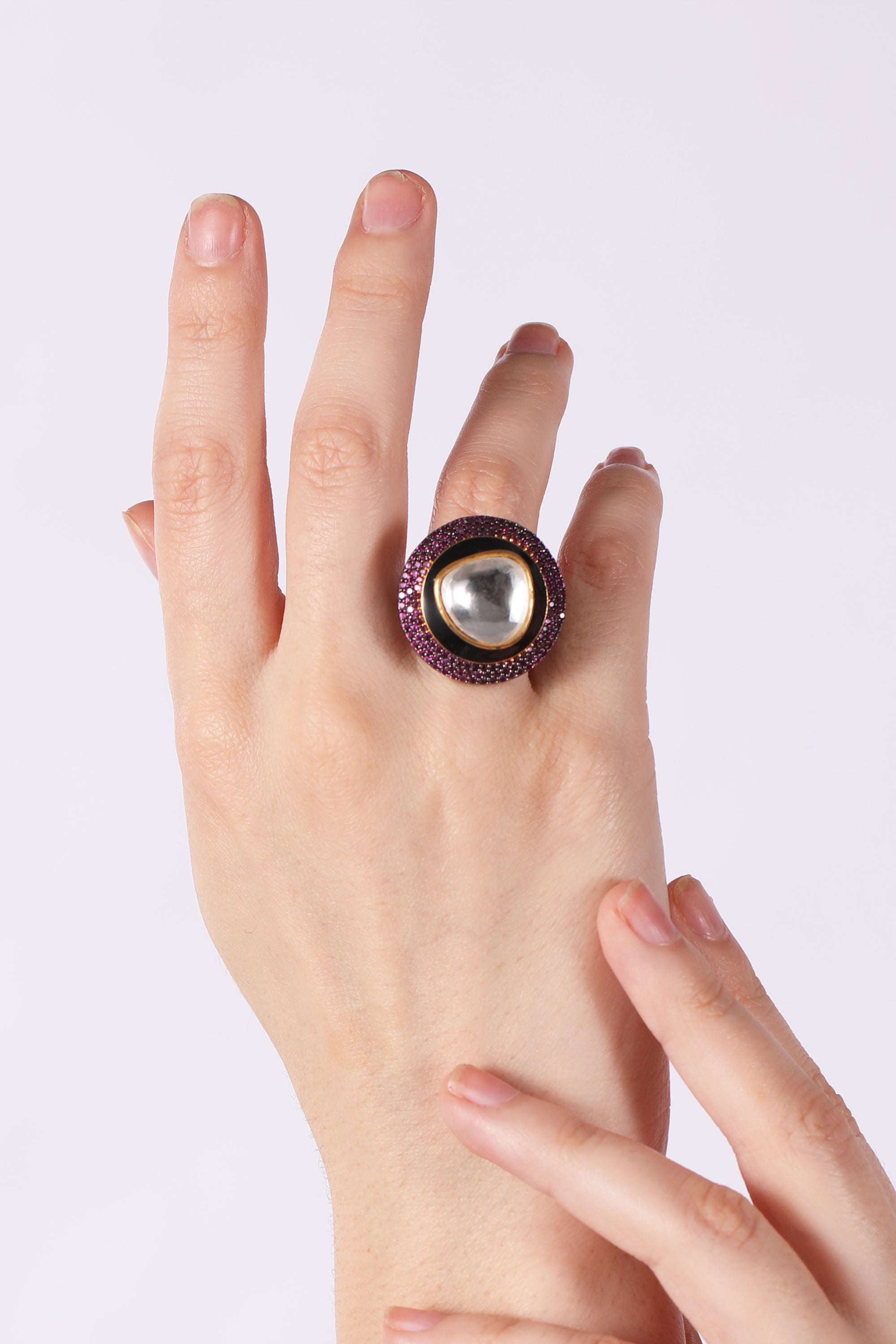 - Statement Ring: Designed as a statement or cocktail ring, making it a bold and eye-catching accessory.