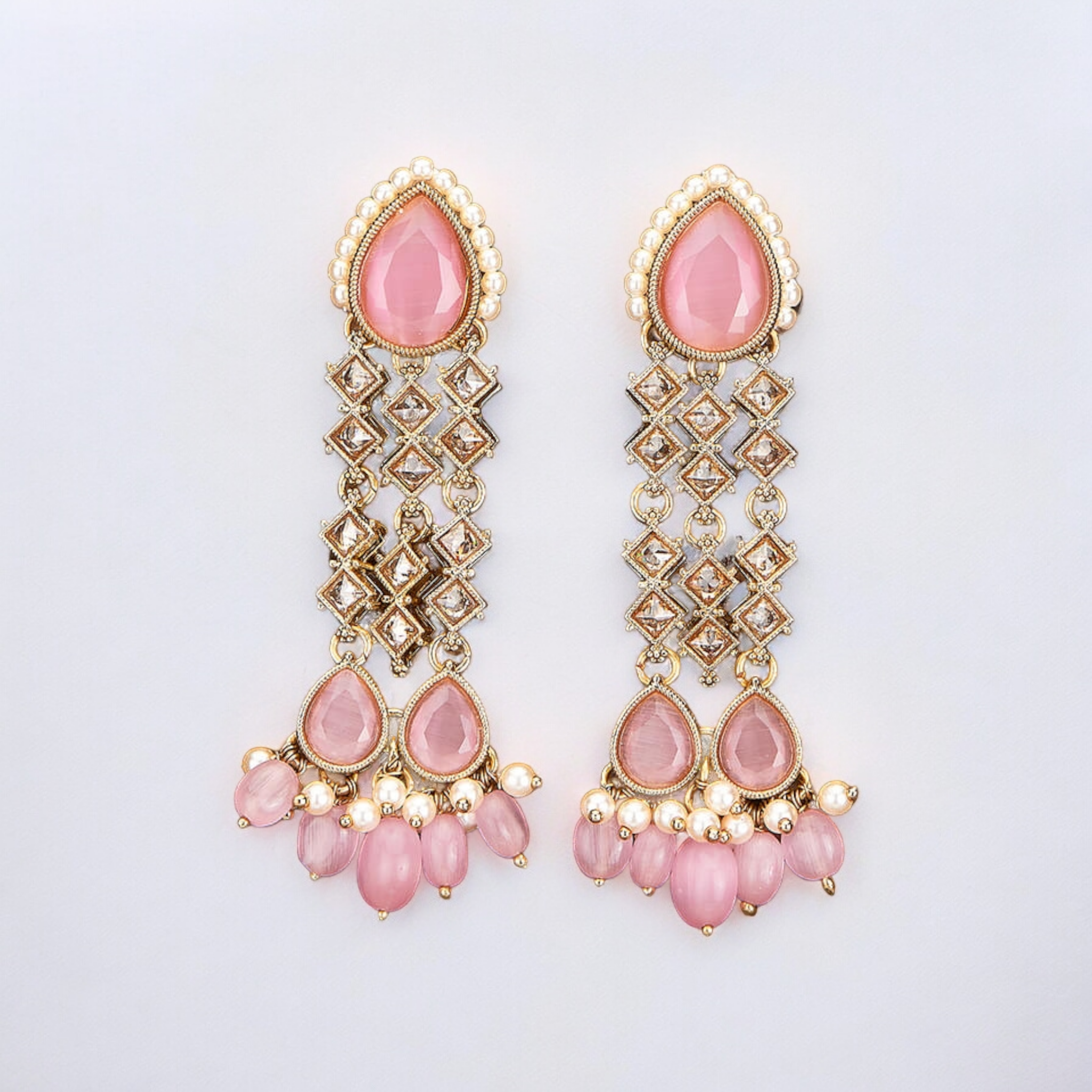 Belle Edge Pink Handcrafted Gold Plated Pearl Earring