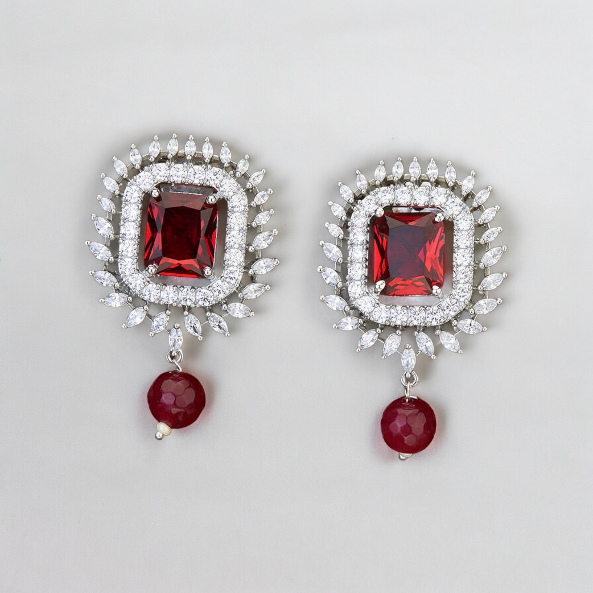 Belle Edge Rhodium Red Plated Stud Earring