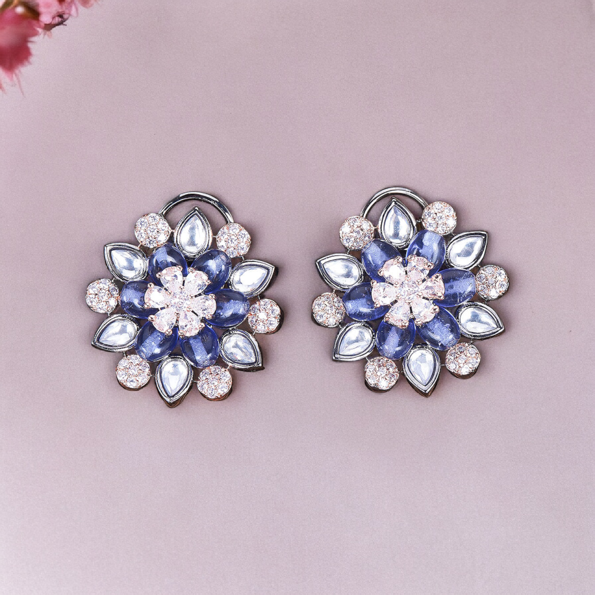 - Floral Design: These earrings feature a captivating floral design with blue stones at its center.