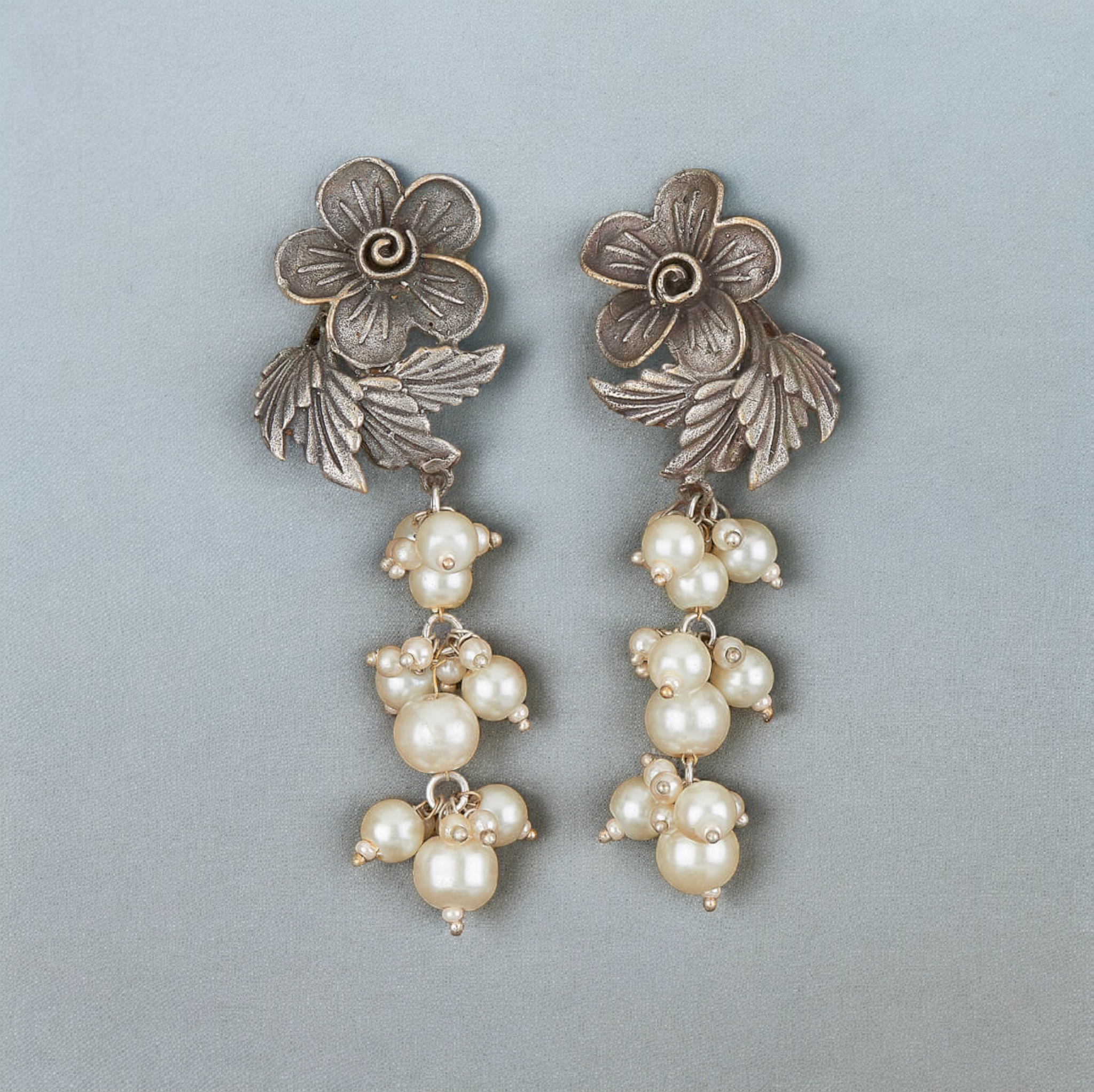 - Pearl Clusters: Multiple clusters of pearls dangle from the floral design, creating a playful and feminine look.