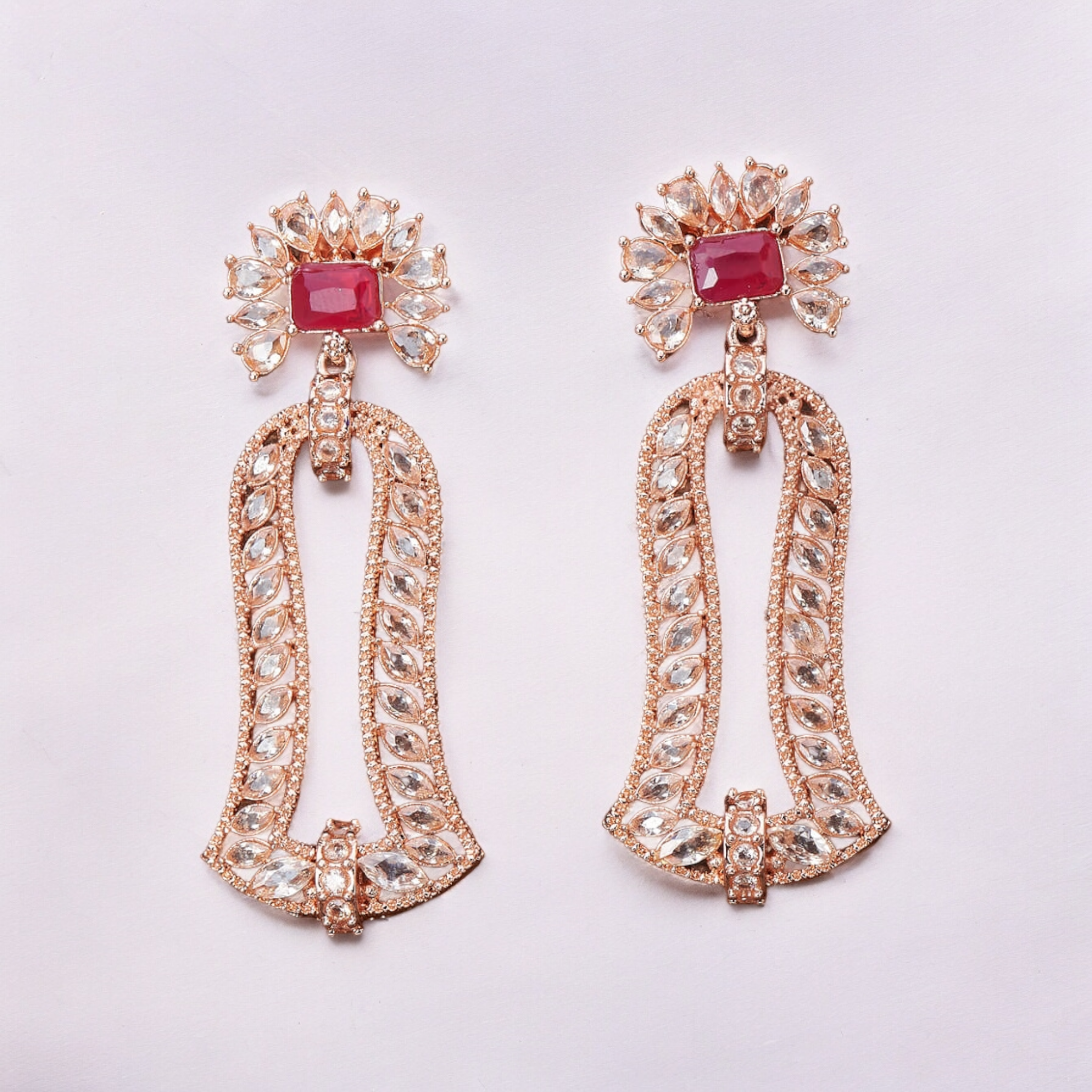 Belle Edge Classic Rose Gold Plated Stone Earring