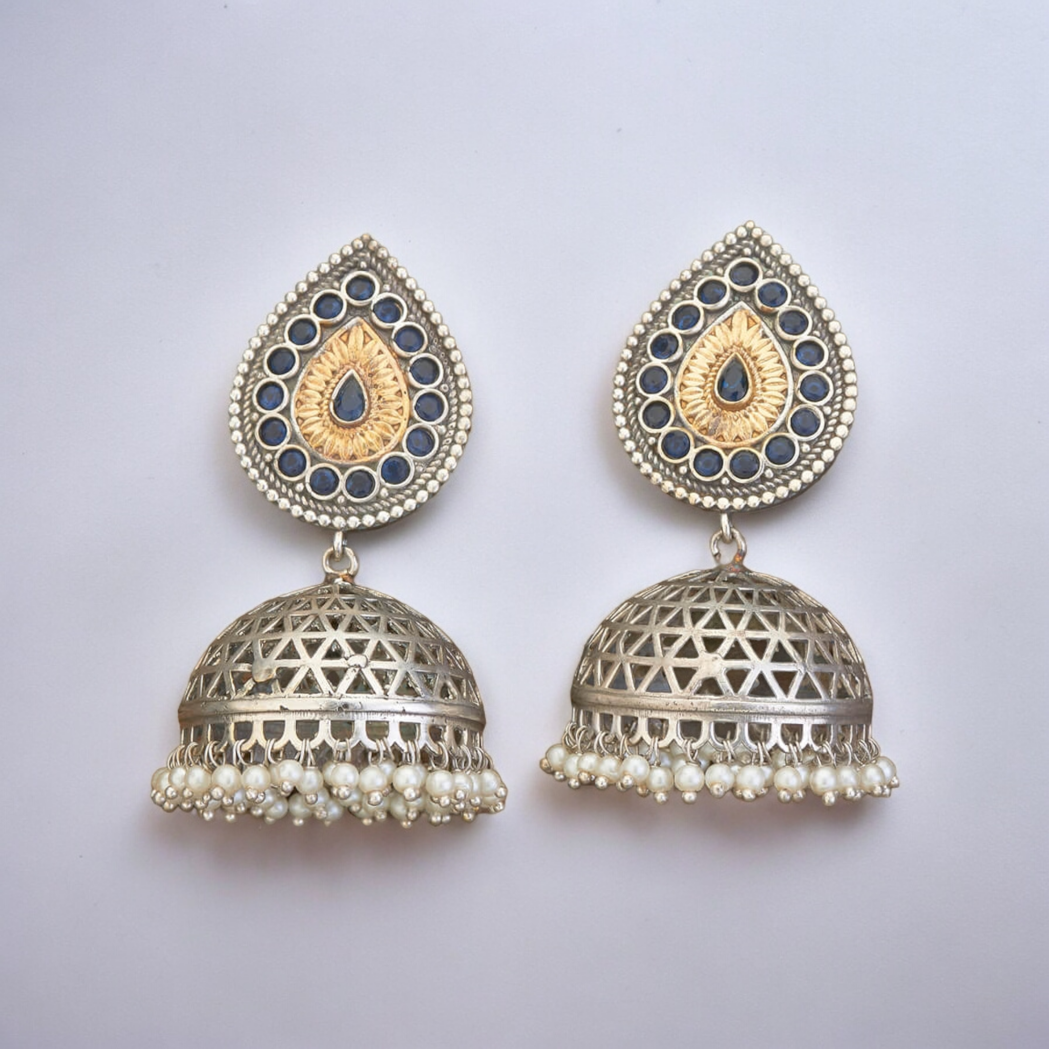 This Oxidised Moti Earring With 2Tone Plating is the perfect accent piece. Enjoy the beauty of oxidised metal and two-tone plating in a unique, eye-catching design. The combination of these elements is sure to make a statement, no matter the occasion.