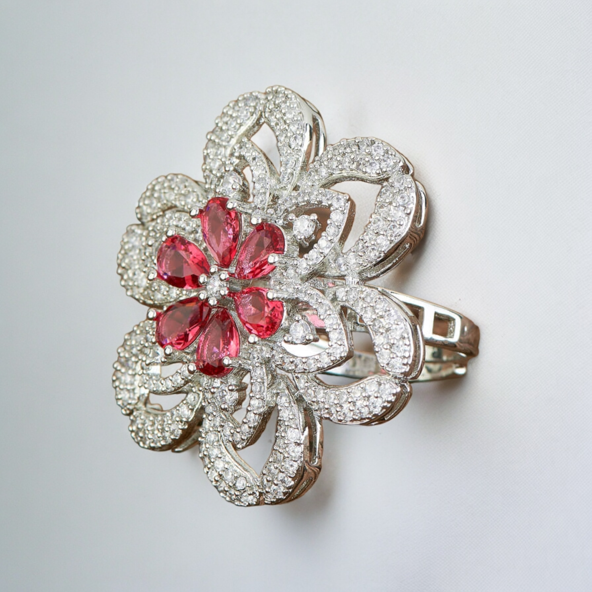 - Ruby or Red Gemstones: Features petal-shaped red gemstones (likely rubies or ruby simulants), adding a rich, vibrant color.