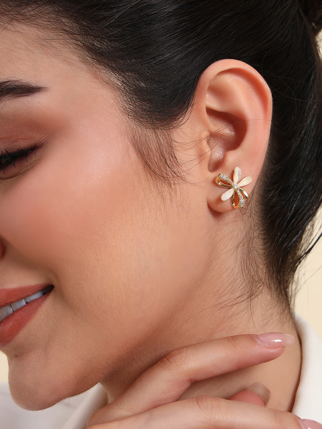 - Chic Floral Design: These earrings feature a delicate flower-inspired design with a combination of gold-plated petals and crystal embellishments, perfect for adding a feminine touch to your look.