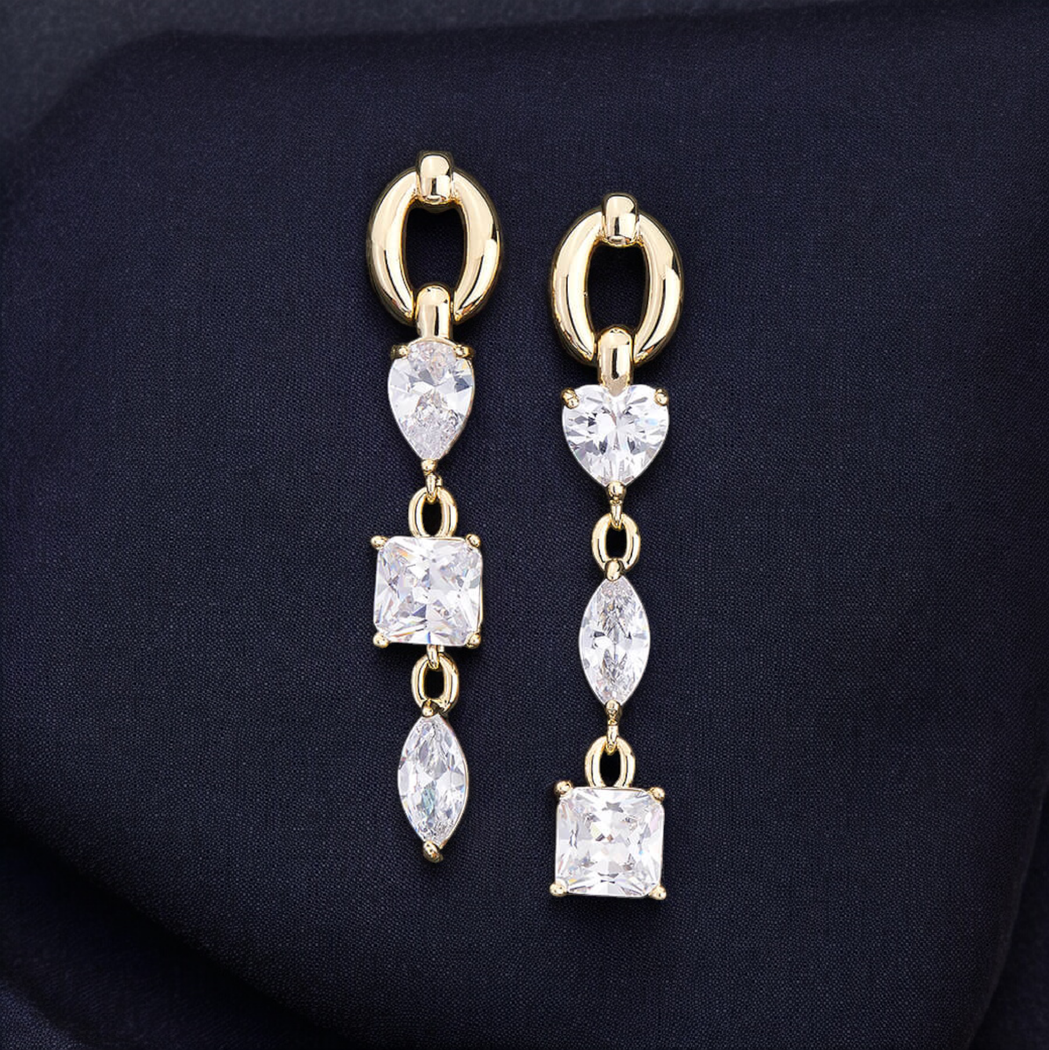 Chic Asymmetrical Design – Unique and stylish mismatched drop earrings for a modern look.