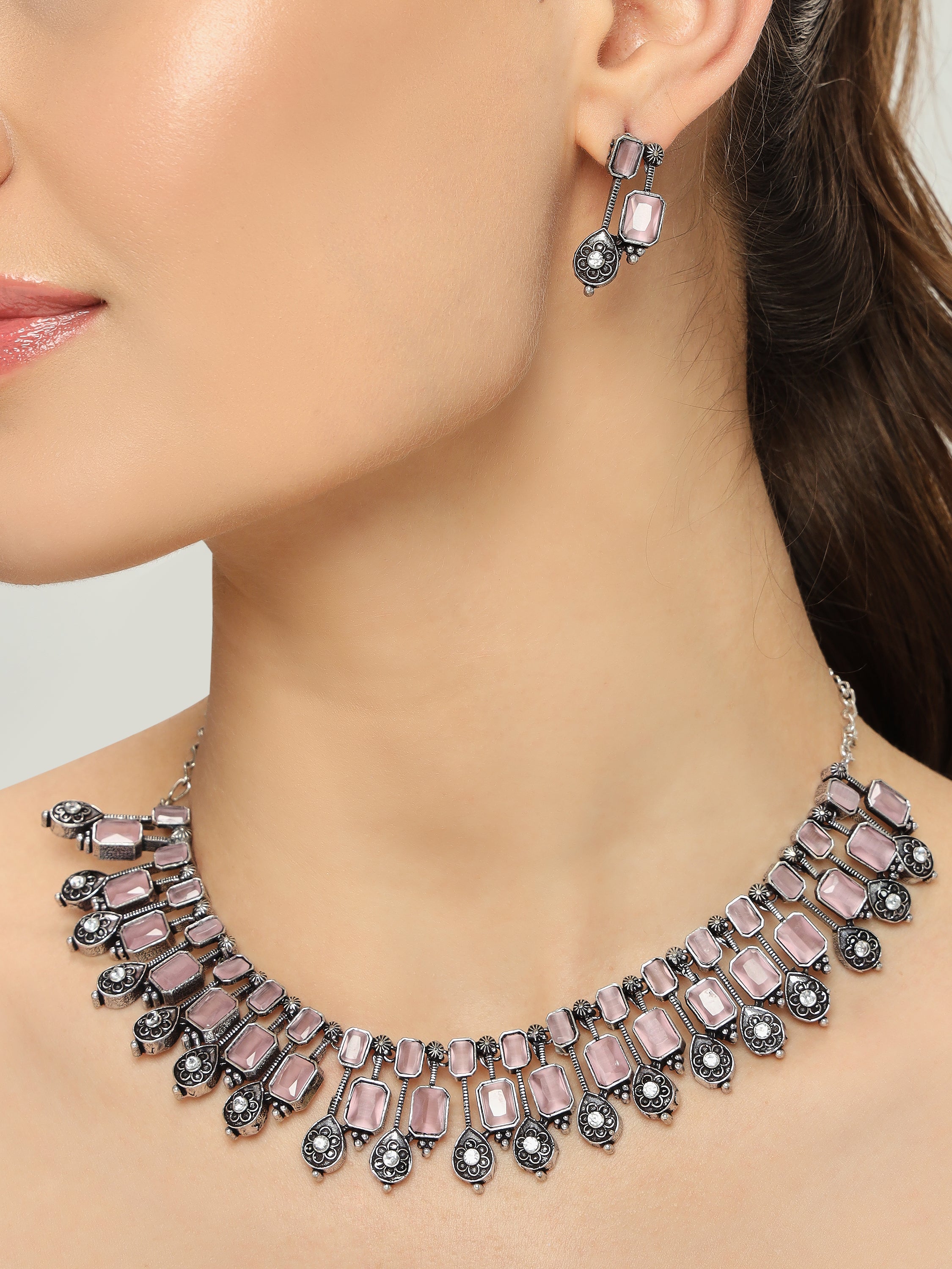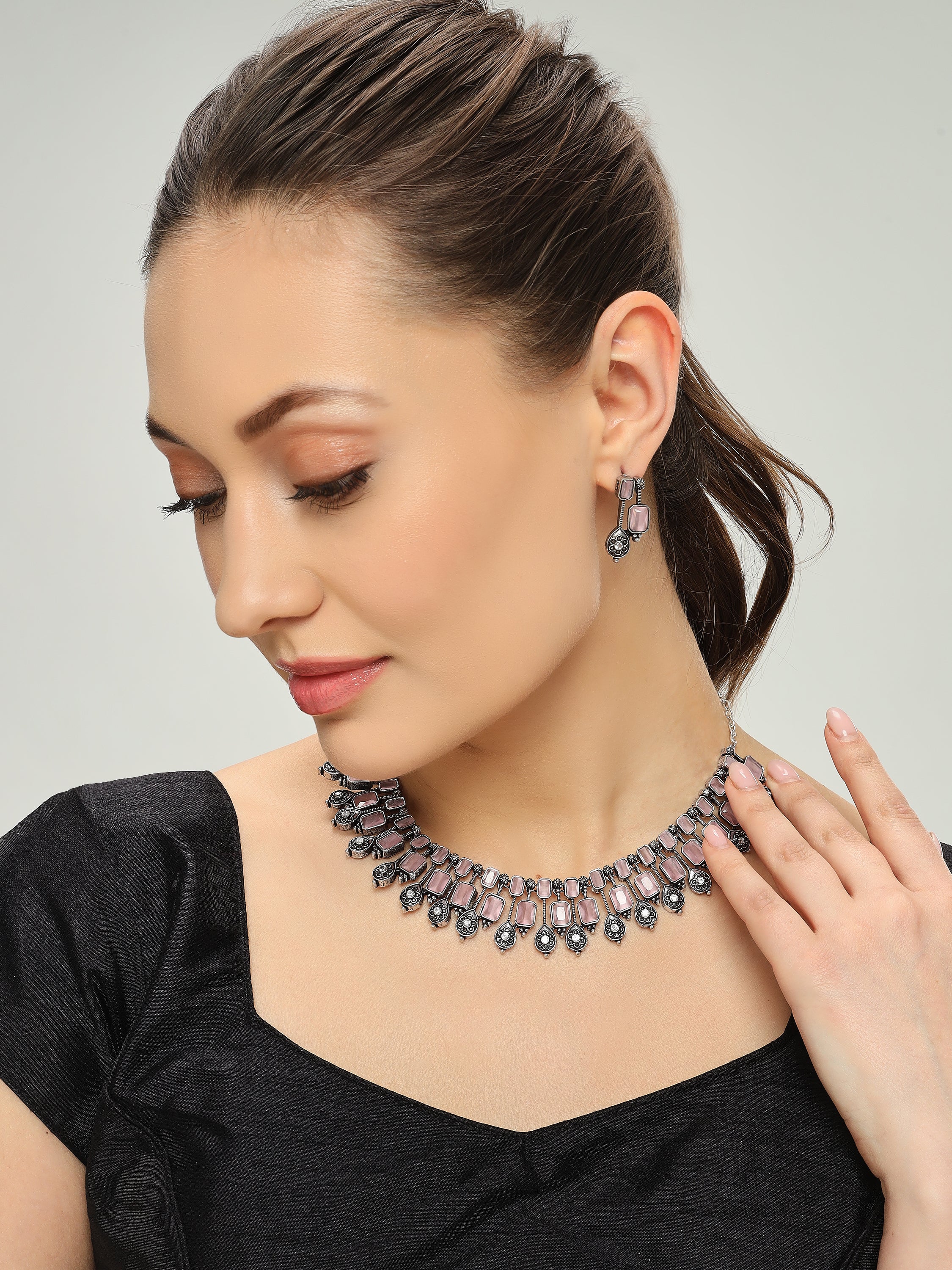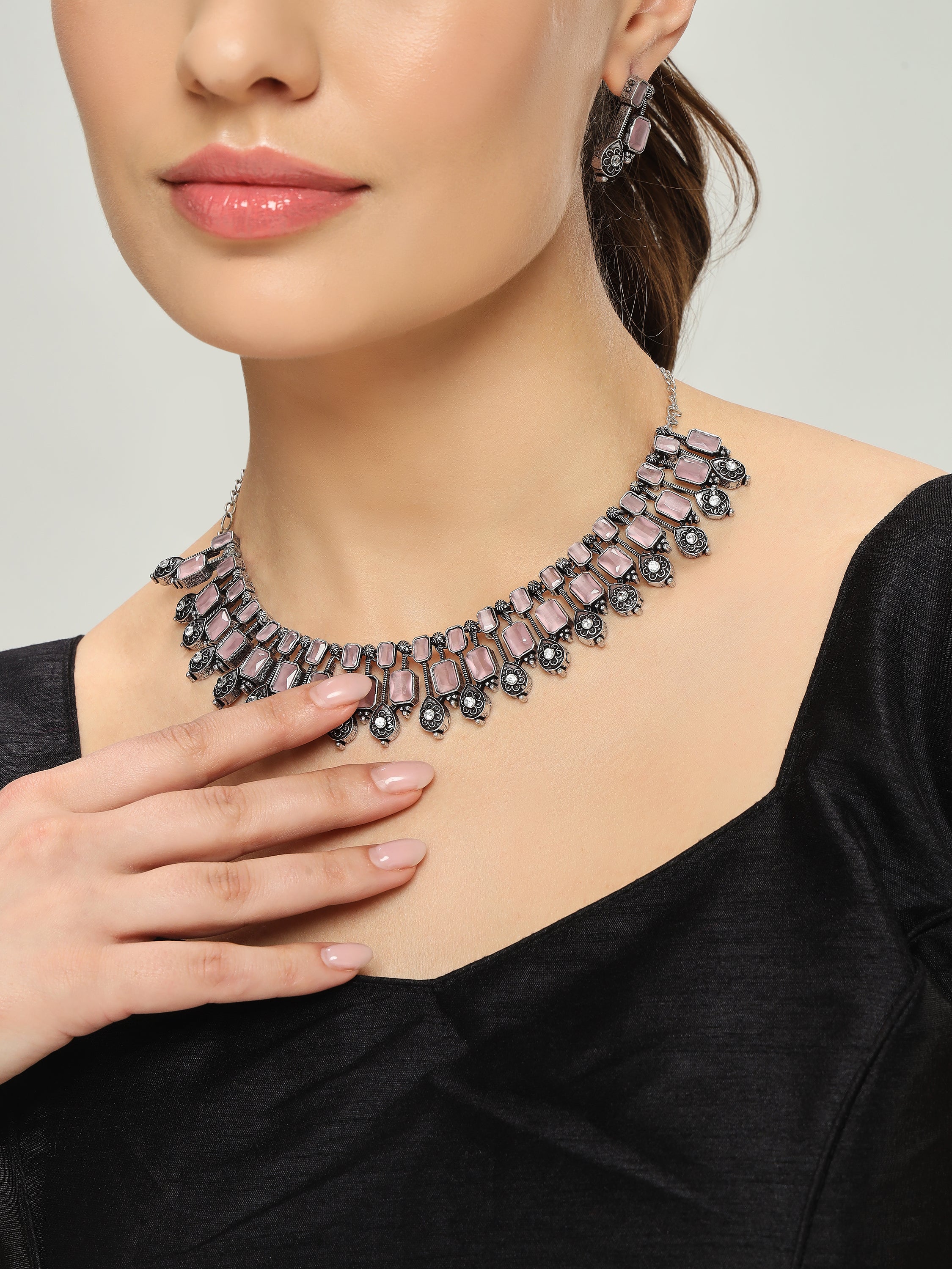 Belle Edge Elegant Pink Gemstone Choker Necklace Set