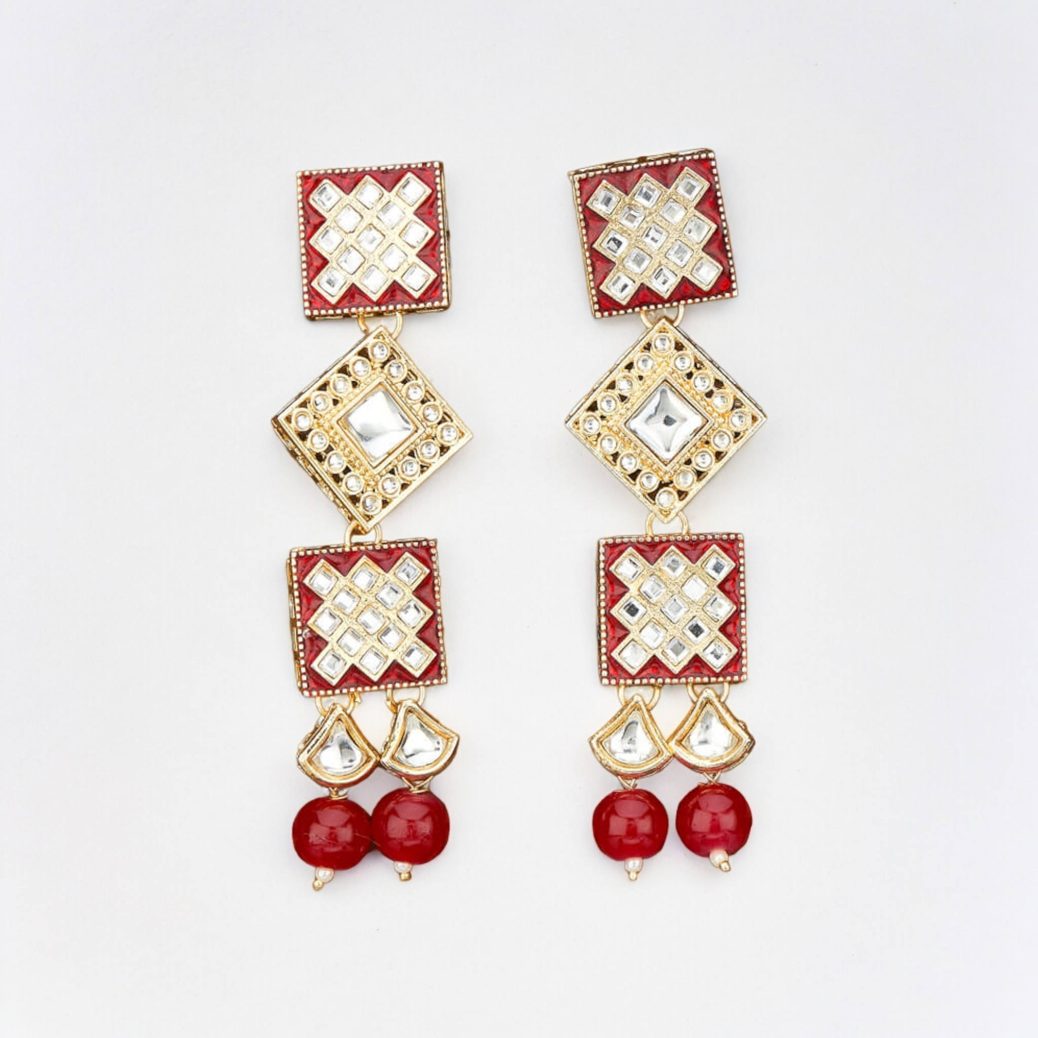 - Red and White Accents: The earrings feature a combination of red and white Kundan, creating a striking and elegant look.