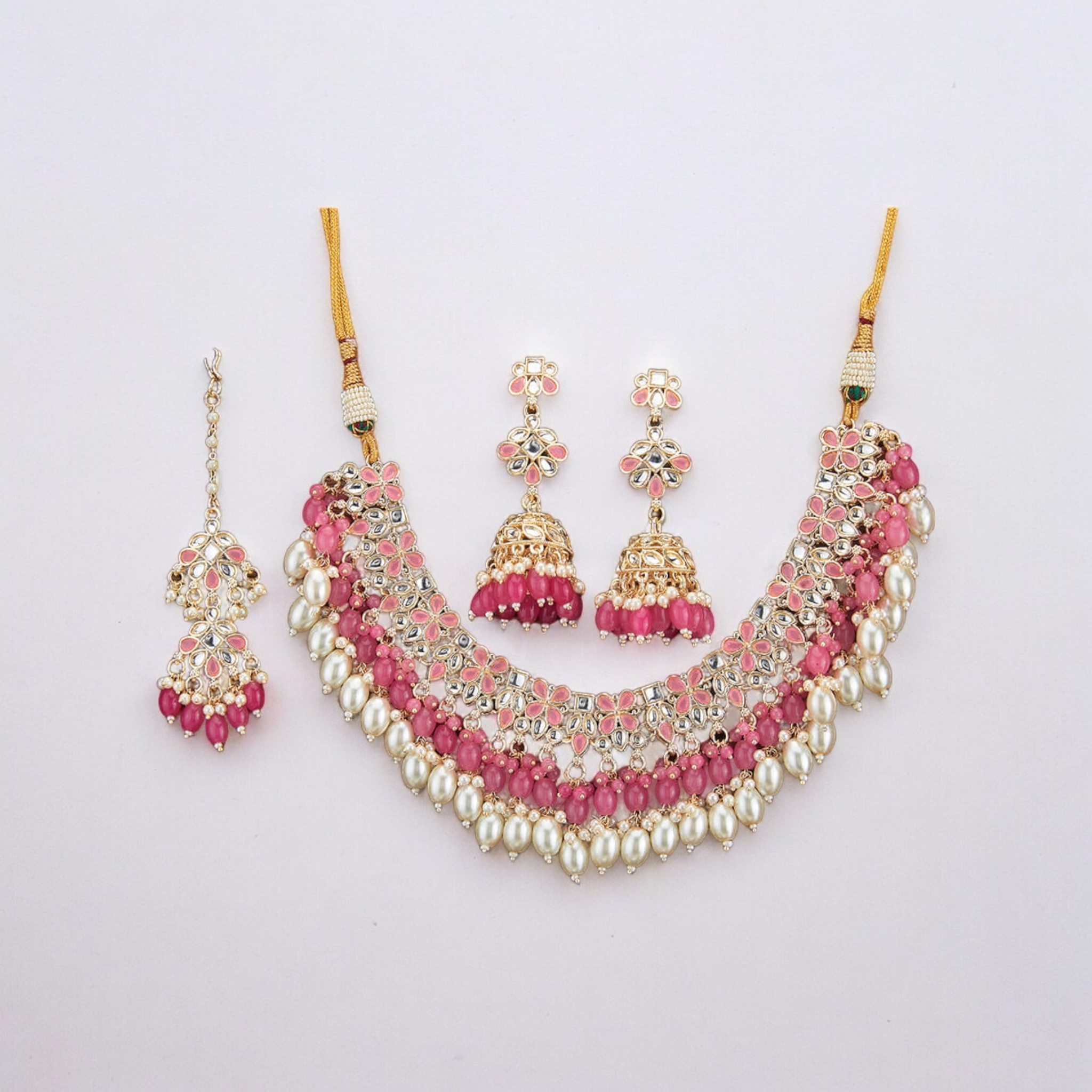 Belle Edge HandCrafted Meenakari Pearl Beads Gold Plated Necklace