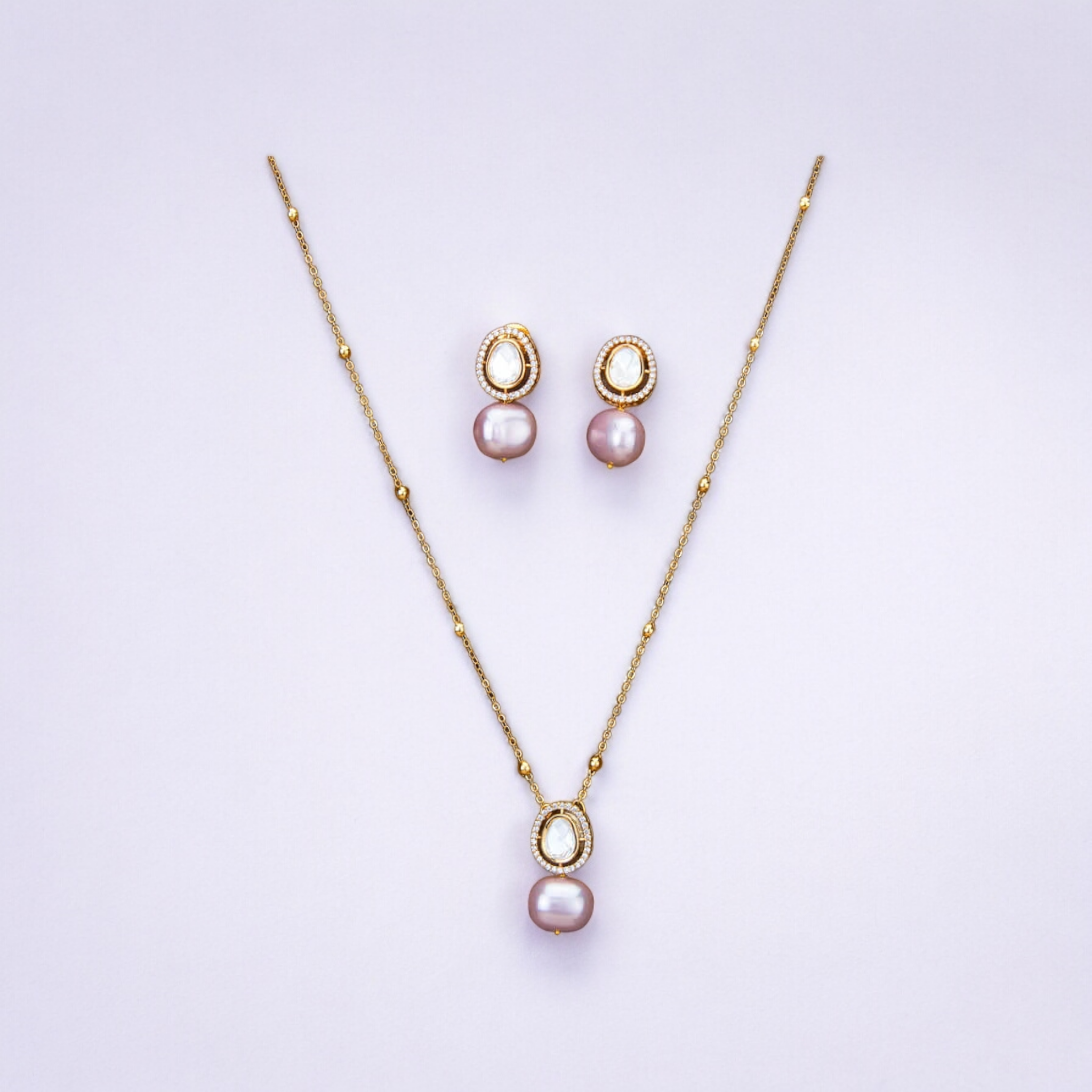 - Pearl Necklace: The set features an elegant necklace with a single freshwater pearl pendant.