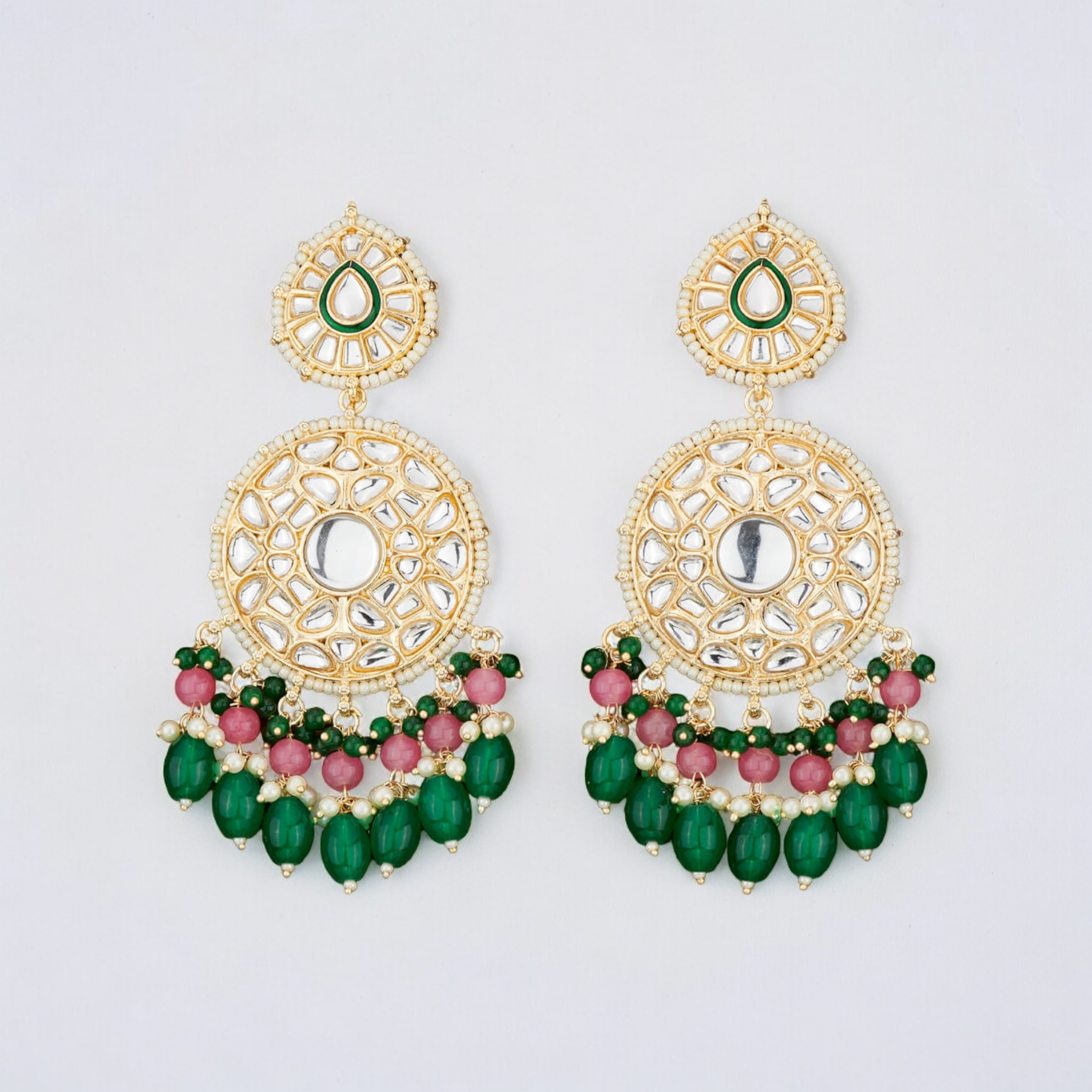 - Green and Pink Bead Drops: The earrings are adorned with a vibrant mix of green and pink beads, creating a festive and joyful touch.