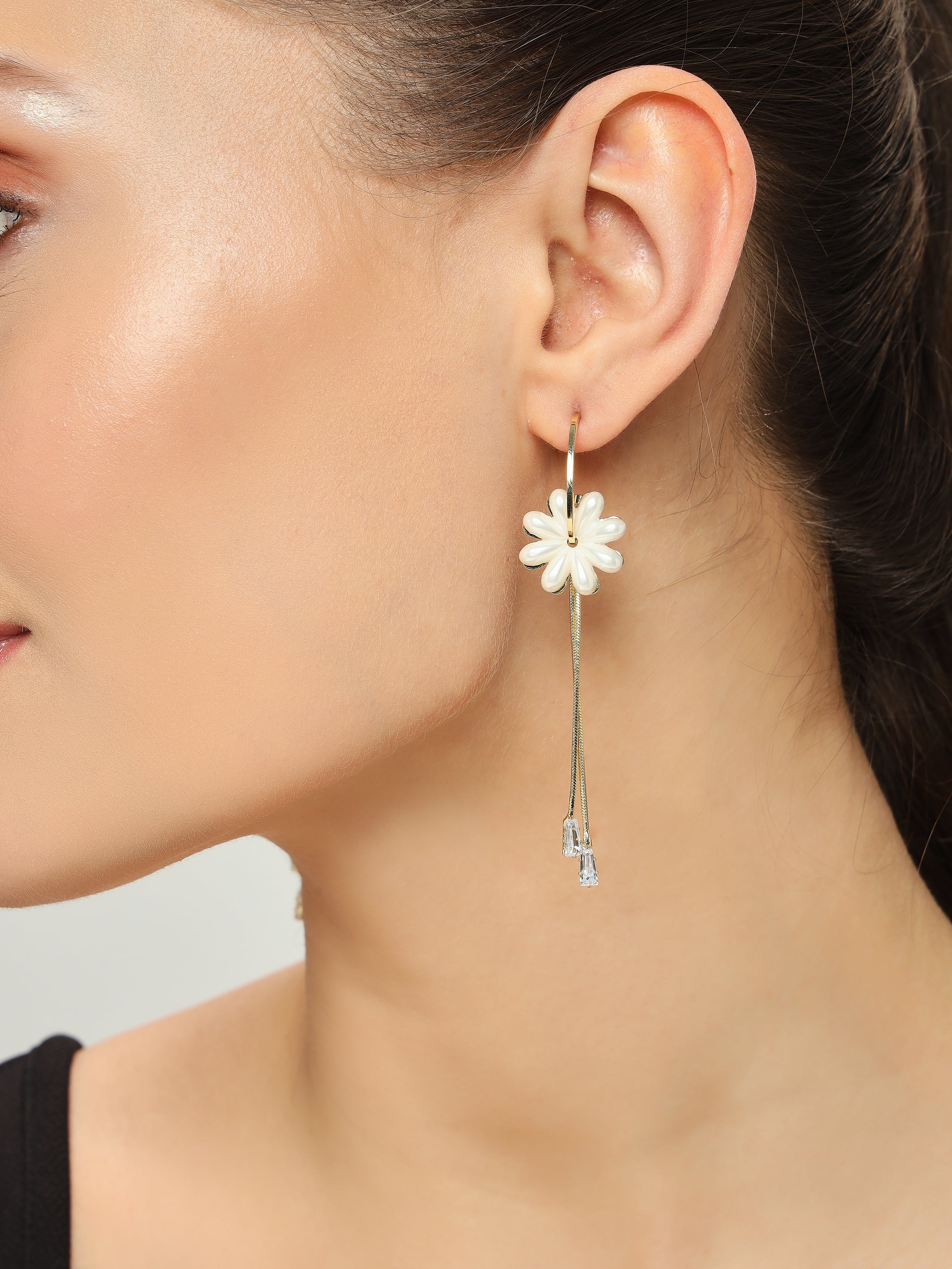 Belle Edge Pearl Flower Hoop Earrings