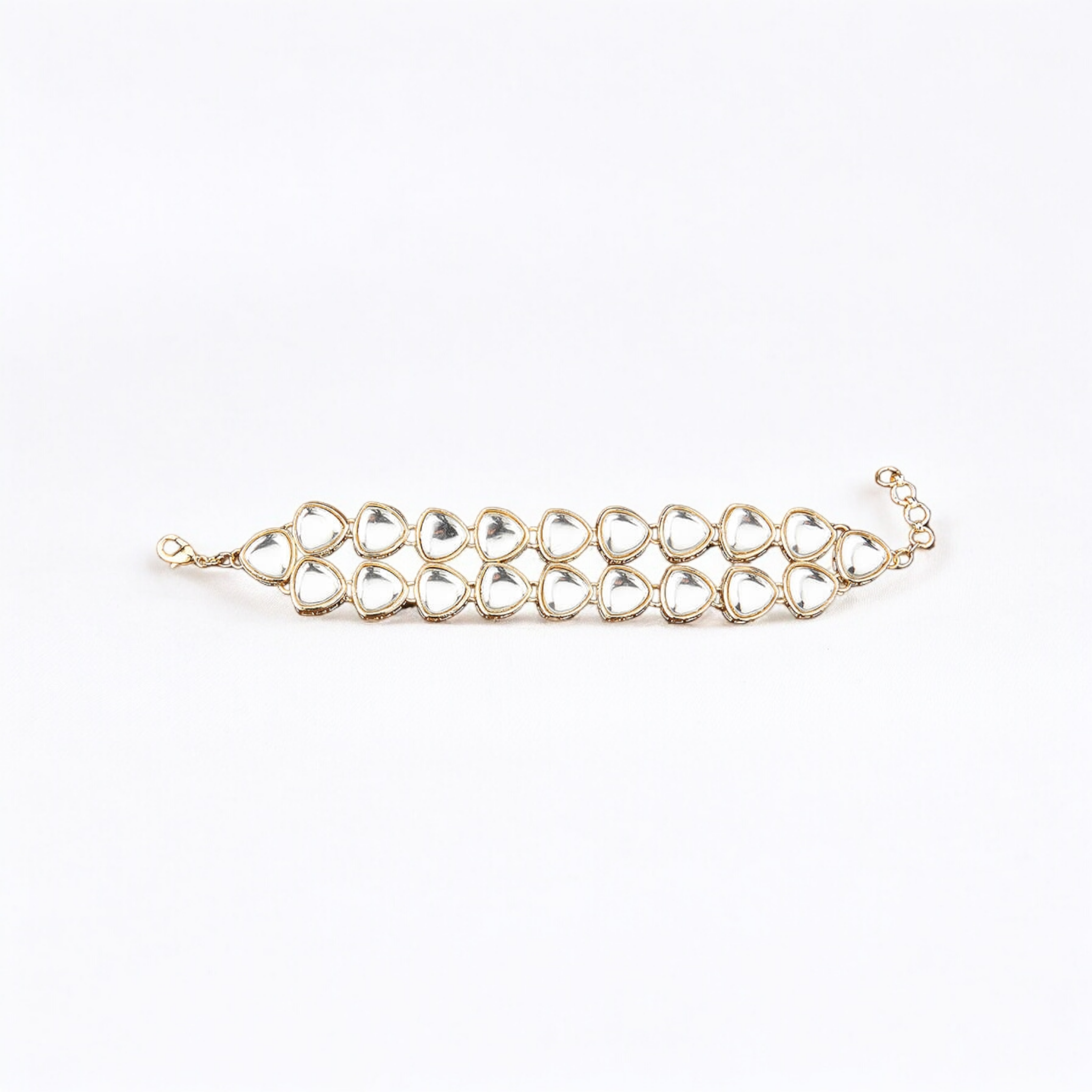- Timeless Elegance: A stunning double-row Kundan Polki bracelet with a regal charm.