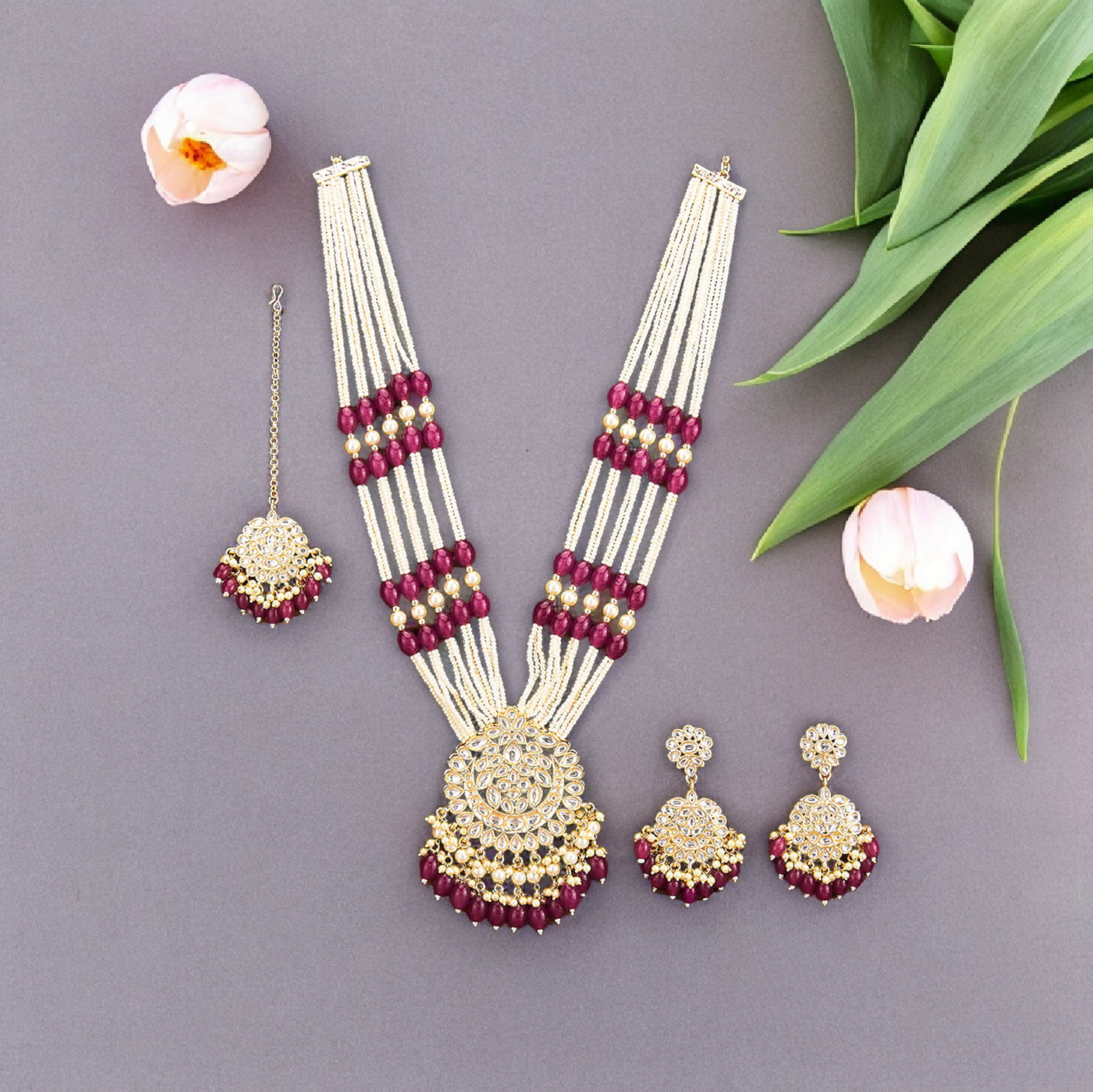 Belle Edge Traditional Kundan Pearl Necklace Set
